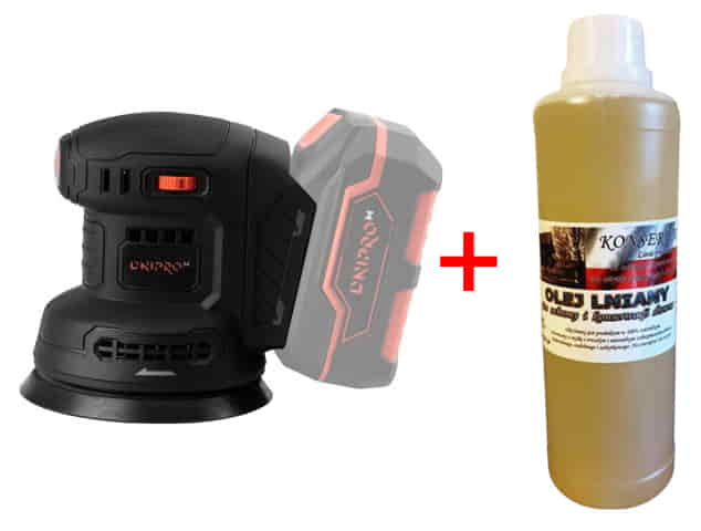 Szlifierka mimośrodowa akumulatorowa Dnipro-M DSO-200BC ULTRA (bez akumulatora i ładowarki) + olej lniany do drewna 1 litr